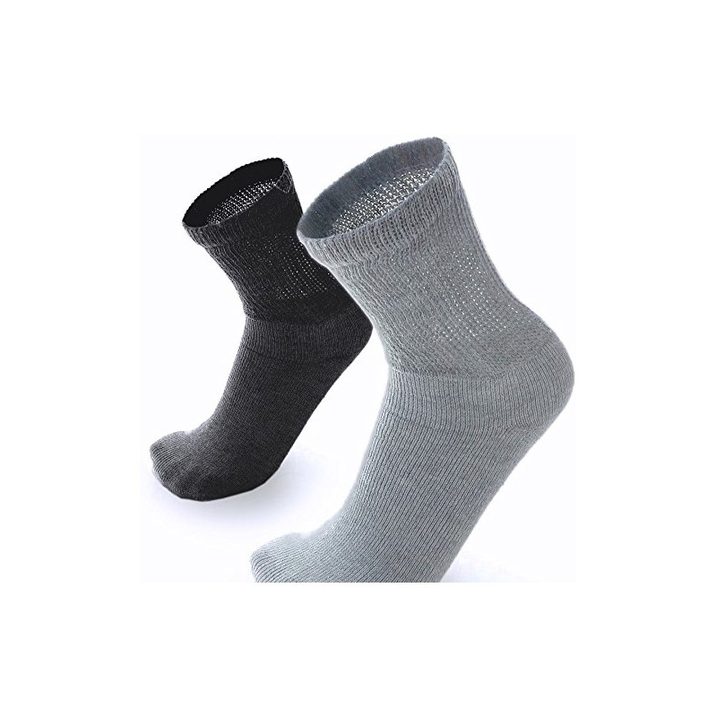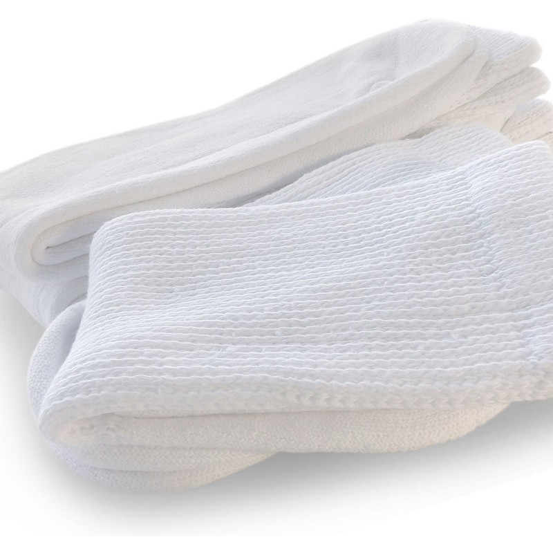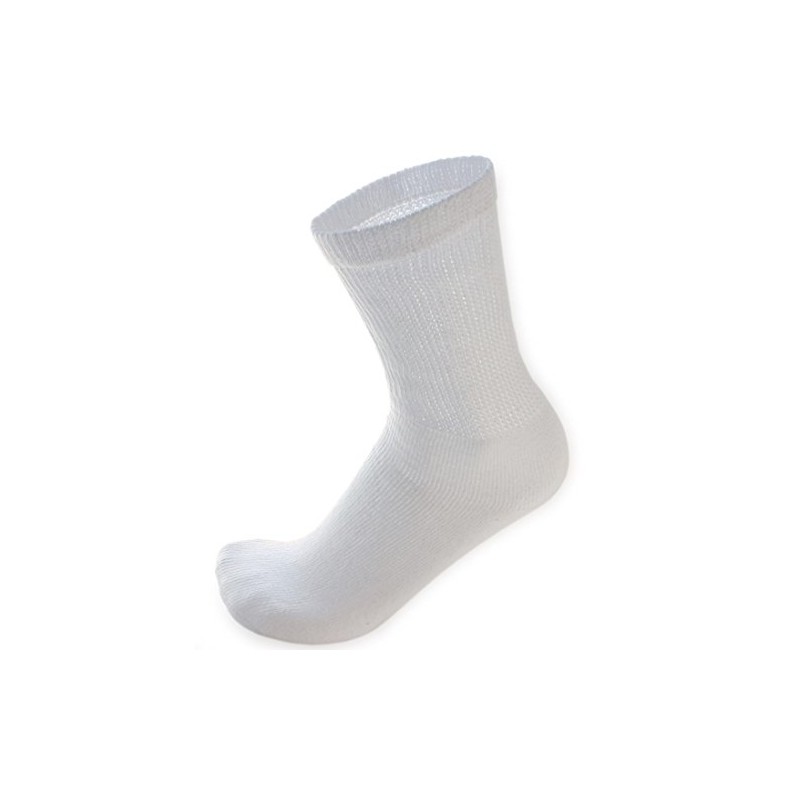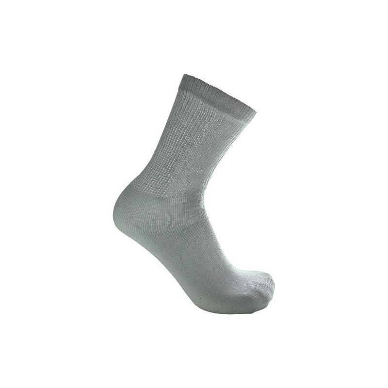 Comfortable non-binding and non-elasticized combed cotton blend socks designed to not constrict the foot, and allow for optimal circulatory flow. Made with soft combed cotton yarn, these non-elasticized socks are suitable for sufferers of diabetes. These socks have full cushion lining, with heel and toe support for pressure relief and maximum foot protection. Unisex. Available in 3 solid colors: Black, White, and Grey, and in 2 sizes: 9 to 11, and 10 to 13. 80% Combed Cotton, 18% Nylon, 2% Elastic. Made in Pakistan.