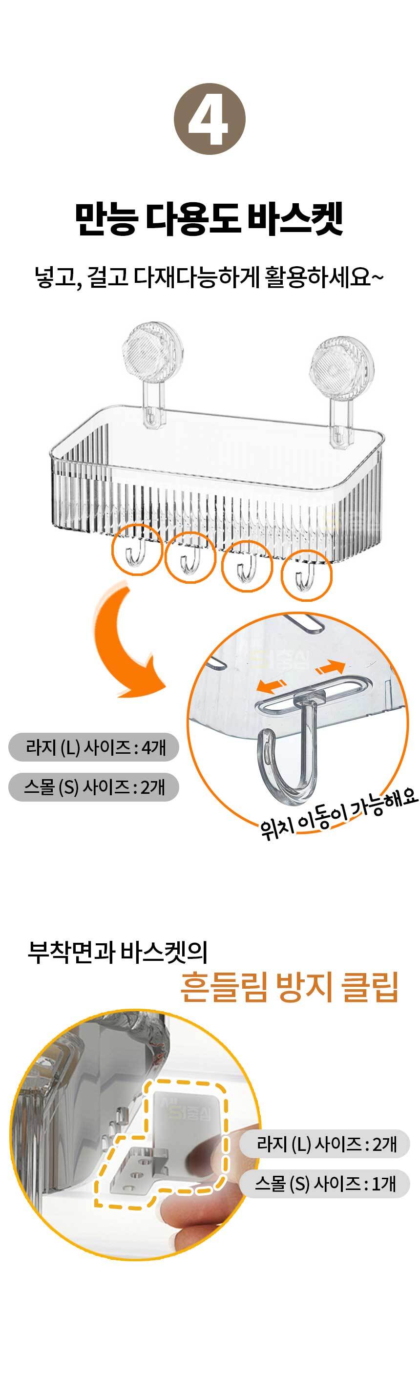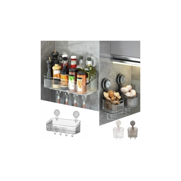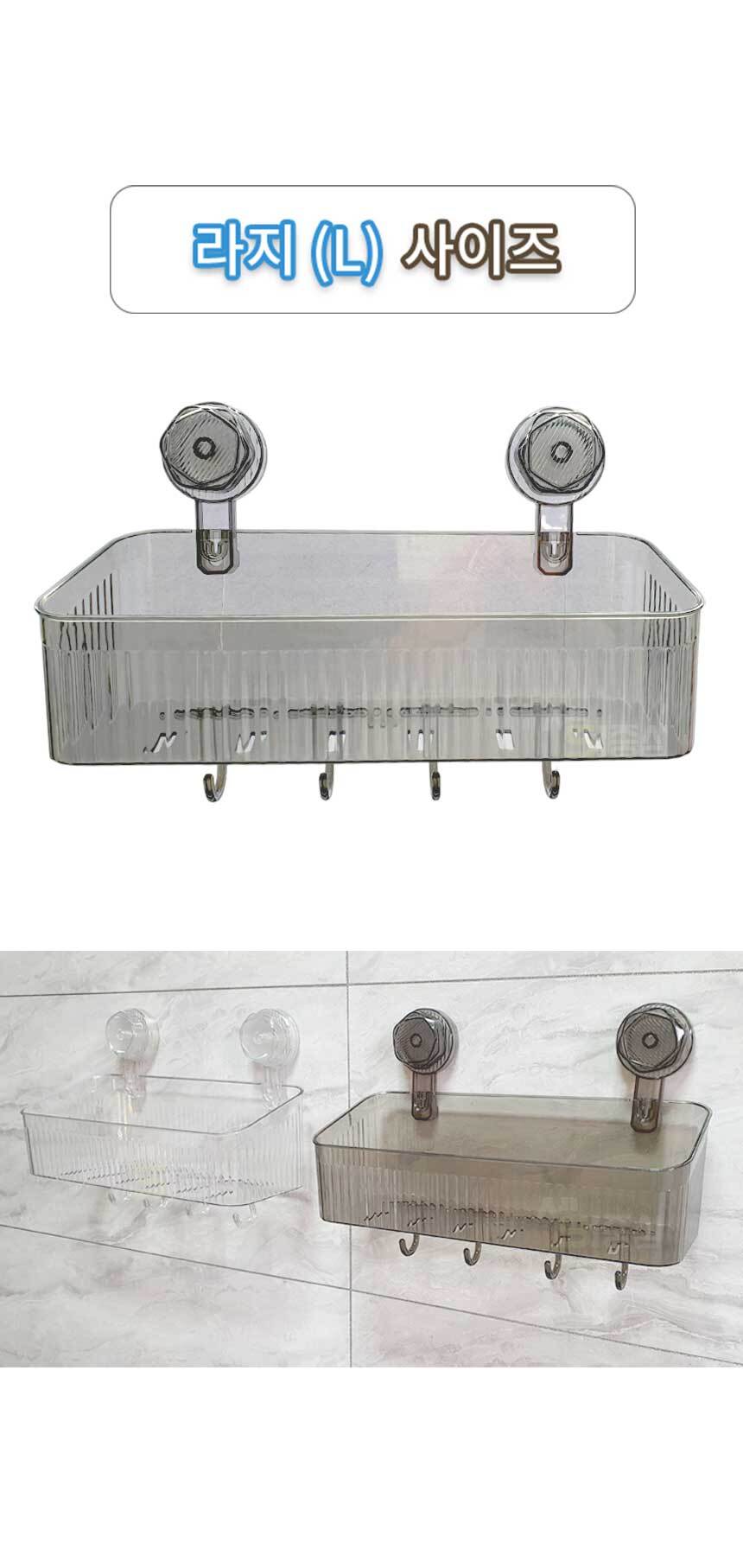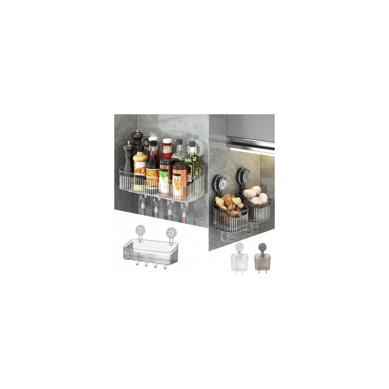 Non-perforated kitchen shelf, bathroom shelf, bathroom, kitchen stand, suction basket BR translucent/L size 2ea