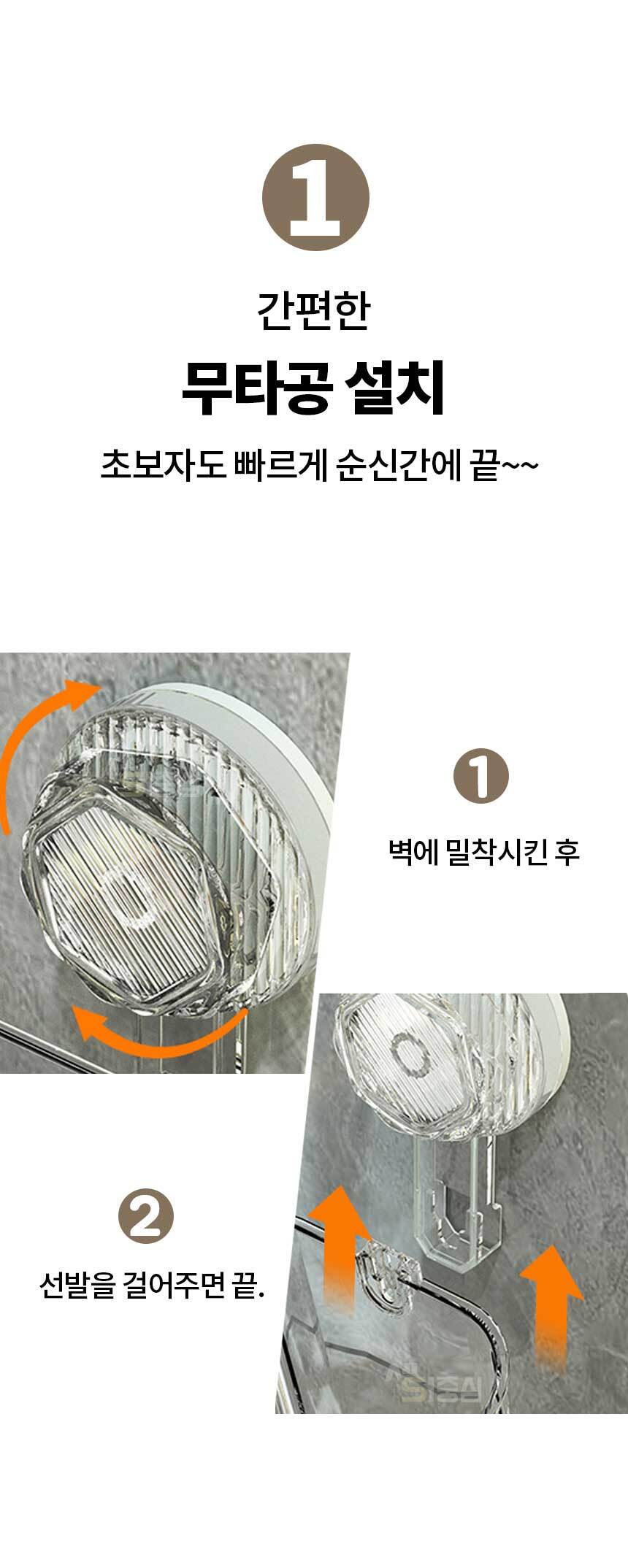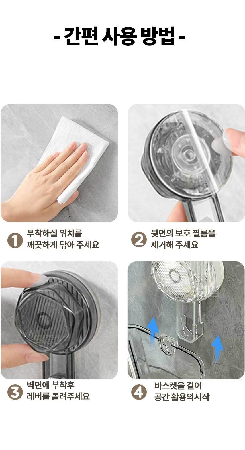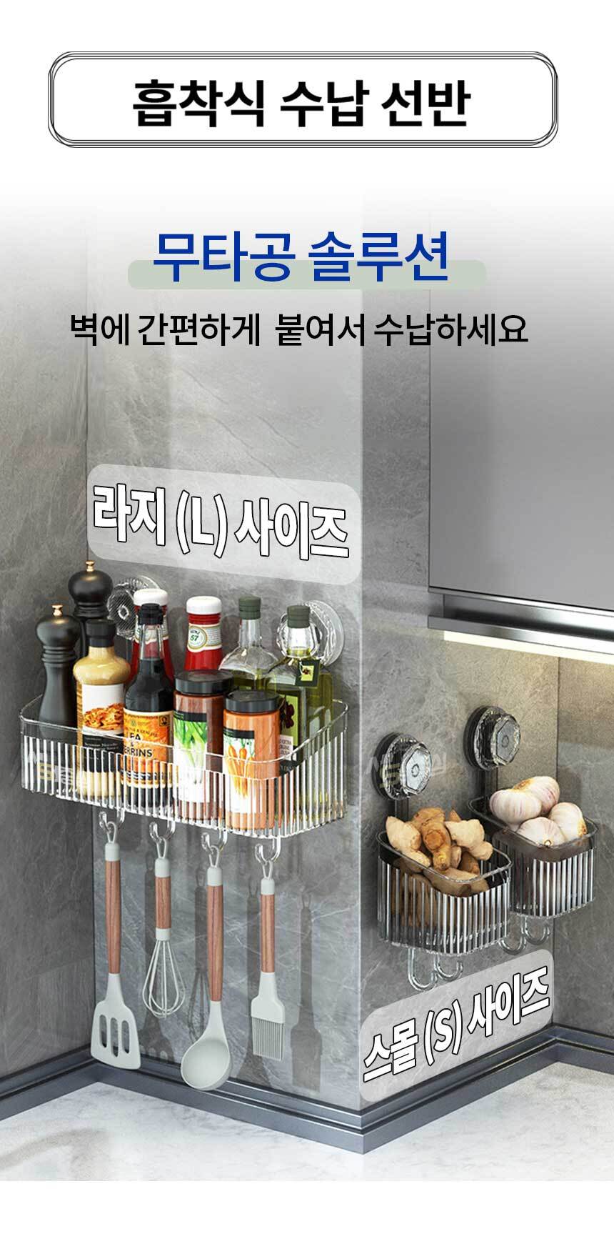 Non-perforated kitchen shelf, bathroom shelf, bathroom, kitchen stand, suction basket BR translucent/L size 2ea
