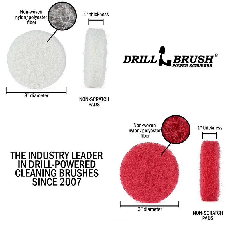 - 5 piece kit includes a Velcro Driver and four 3 inch power scrubbing pads Part Number: 3in-pads-2in-driver-red-wh