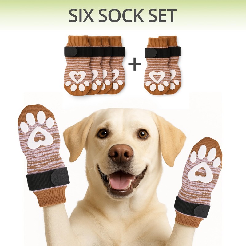 Non-Slip Dog Socks for Hardwood Floors - 6-Pack | Anti-Slip Toes to Prevent Licking Paws, Add Grip, and Provide Paw Protection | for All Ages and Senior Dogs - Medium