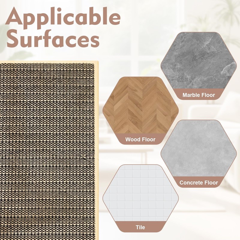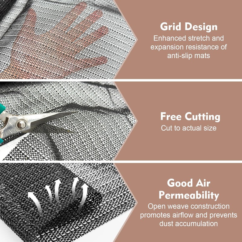 • Strong non-slip: high-density PVC material with 3D groove structure guarantees double-sided friction force for fixing carpets and floor coverings. Ventilated grid structure prevents condensation build-up and protects surfaces from scratches. For optimal effect, please dry clean the surface beforehand.