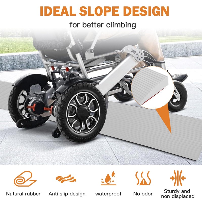 - 【Easy Installation】Our wheelchair ramp has a strong self-adhesive back, no additional tools required. Whether placed in front of the front door, on the side of the road, in the supermarket, in the garage or elsewhere, it provides a stable hold and ensures that every passage runs smoothly and safely.