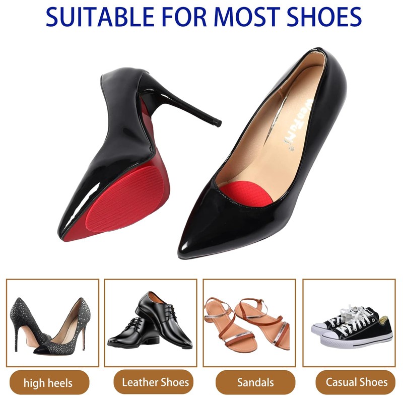 - WIDELY USED: Our high heels anti-slip shoe grips are suitable for use on leather shoes, work shoes, sandals, high heels, canvas shoes, casual shoes, and men's and women's shoes of any size. In sufficient quantity, you will receive 8 pcs of non-slip shoe inserts with a thickness of 0.04 inches, which is enough to cover multiple shoes for daily use or as a spare to ensure that you can use them for a long time and don't have to worry about running out.