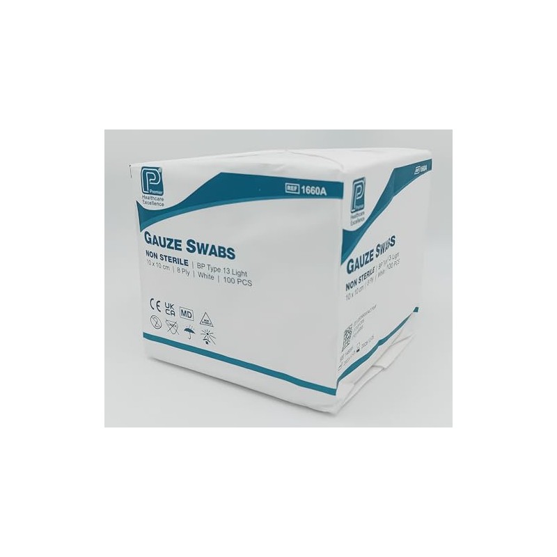 Non-Sterile Gauze Swabs 8 Ply - Pack of 100 | Soft and Absorbent Wound Care (10x10cm - 1660A)