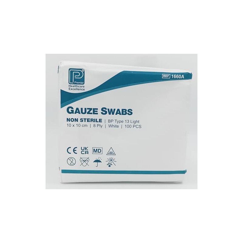 Non-Sterile Gauze Swabs 8 Ply - Pack of 100 | Soft and Absorbent Wound Care (10x10cm - 1660A)