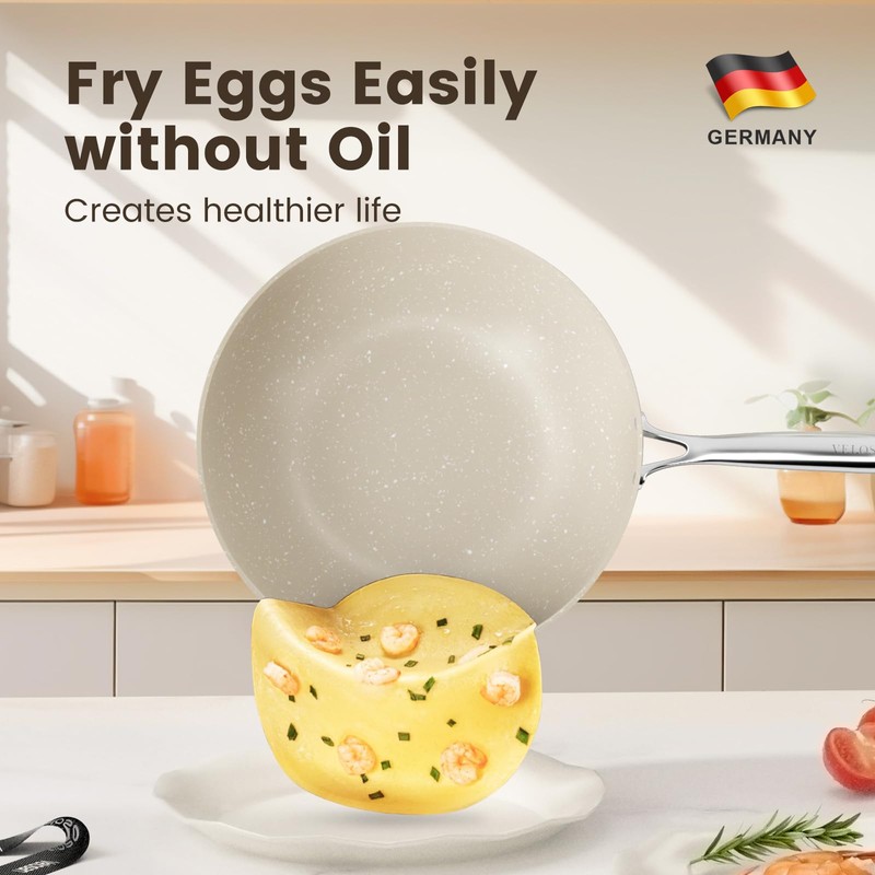 Non Stick Ceramic Cookware Set, Velosan Pebble Series Pots and Pans Set Non-toxic White Induction Cookware, with Frying Pan Saucepan Dutch Oven Wok, PFAS PTFE PFOA PFOS Free, Cream