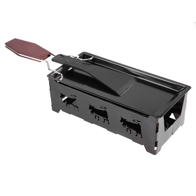 Non-Stick Cheese Melter Raclette Cheese, Portable Cheese Rotaster Raclette Machine with Spatula and Foldable Handle, Black