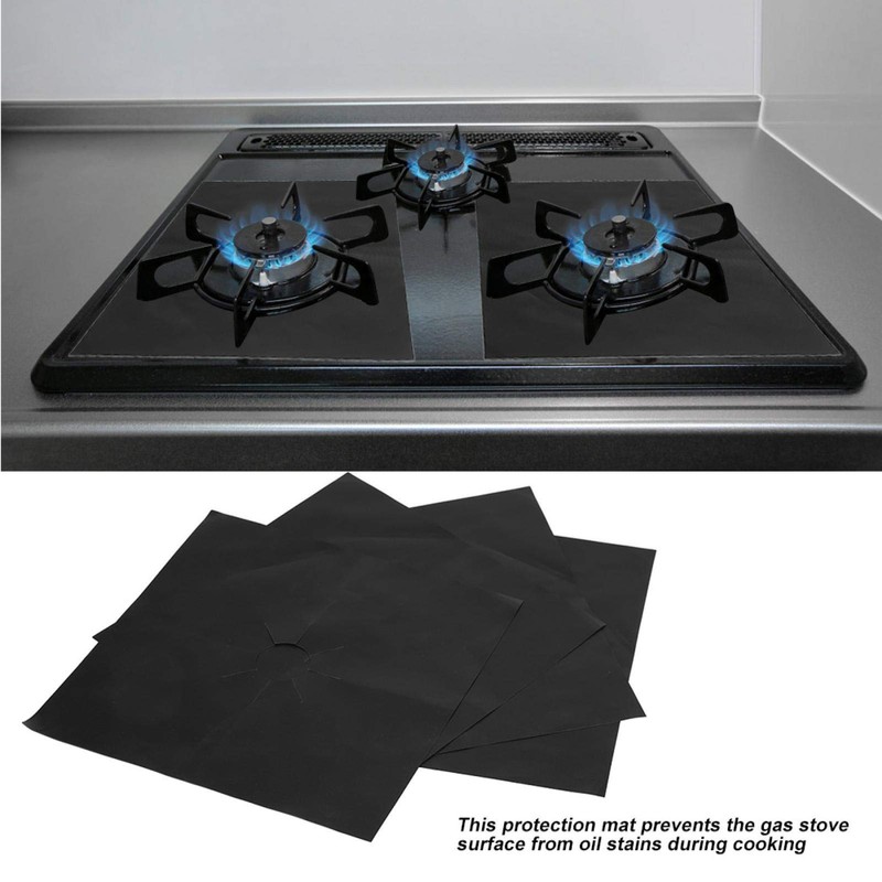 Non-Stick Gas Range Protectors, Reusable Aluminum Foil Gas Stove Cover Protector Liner Mat Pad as Kitchen Tool 4pcs(01)
