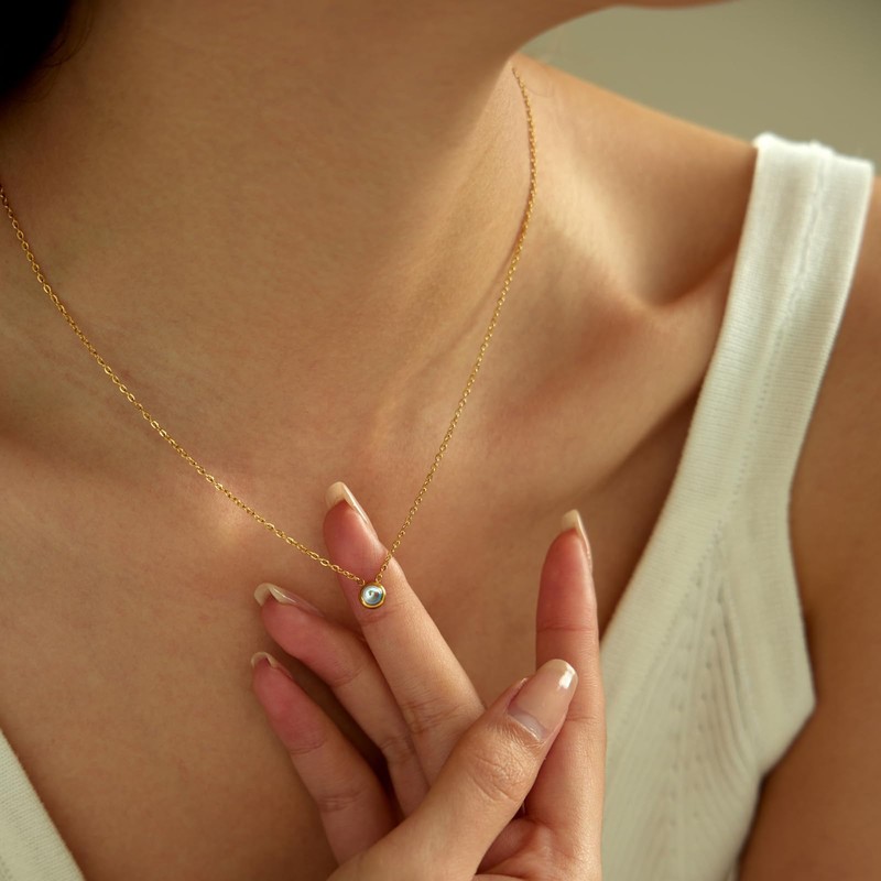 - Stunning Design: This 18K gold plated necklace for women features a stunning blue gemstone pendant that adds a touch of sophistication to any outfit, making it the perfect gold necklace for women who appreciate dainty yet striking jewelry