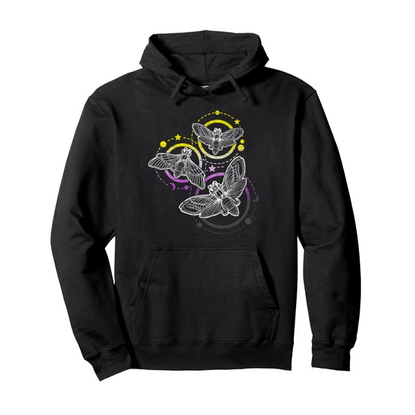 Nonbinary Flag Colours Occult Butterflies Pullover Hoodie, black