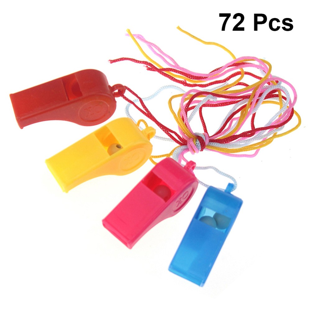 72 Pcs Party Whistle Child Toy Plastic Whistles with Lanyard Emergency Safety