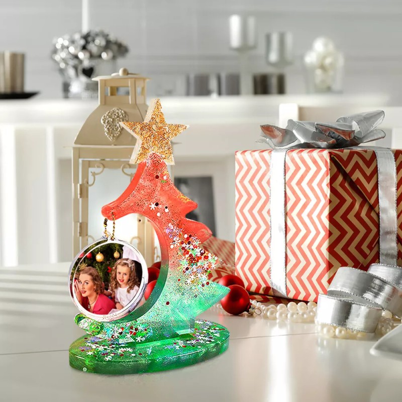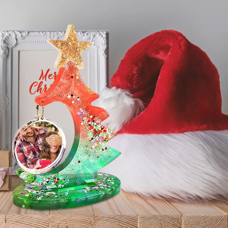 This unique and versatile mold is perfect for creating beautiful crafts with a festive touch. The mold is flexible, durable, and easy to use, featuring a Christmas tree shape with a heart-shaped photo frame, allowing you to create stunning ornaments or decorations.