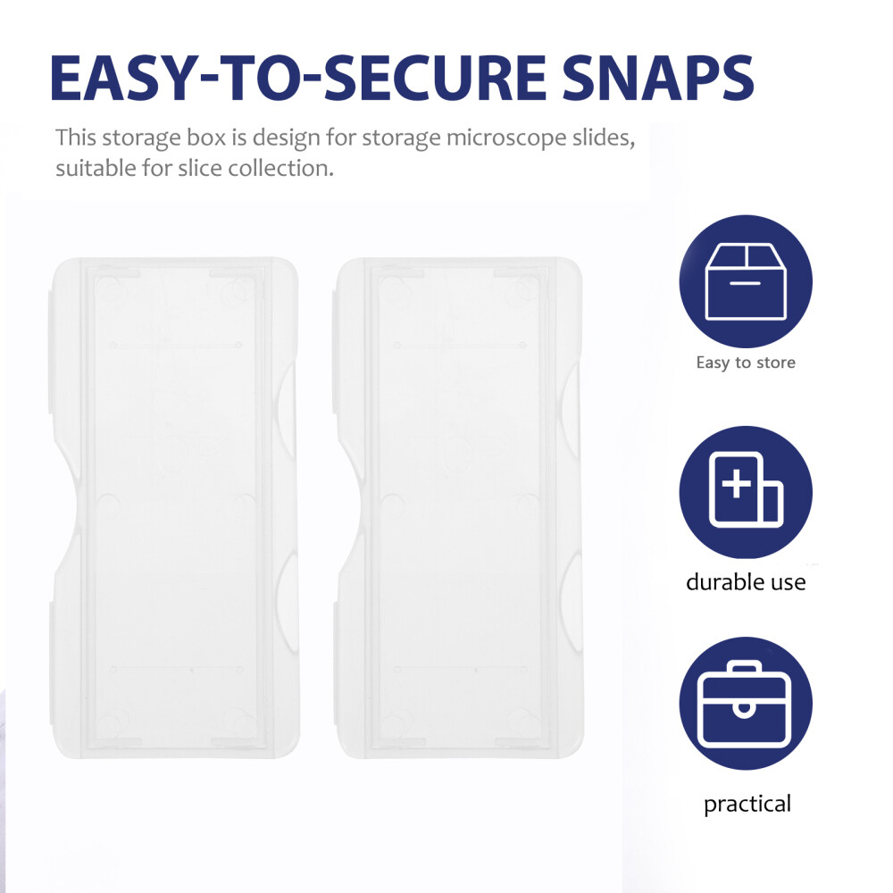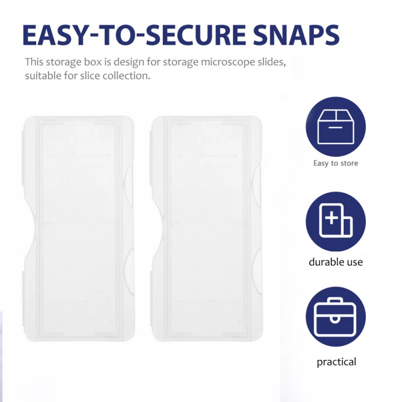 This storage box is design for storage microscope slides, suitable for slice collection.|Manufactured with premium plastic material, with excellent workmanship, durable and practical.|Individual microscope slide storage box for holding microscope slides securely|Easy-to-secure snaps, provide safe storage for valuable slides.|It is suitable for experiments and laboratory microscopy, can also be used as a teaching experiment.