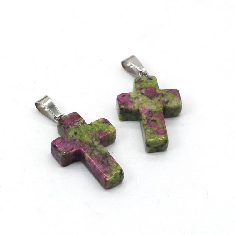none 1PC, 3D Genuine Cross Ruby Zoisite Gemstone Pendant With Silver Bail, Hight Qua