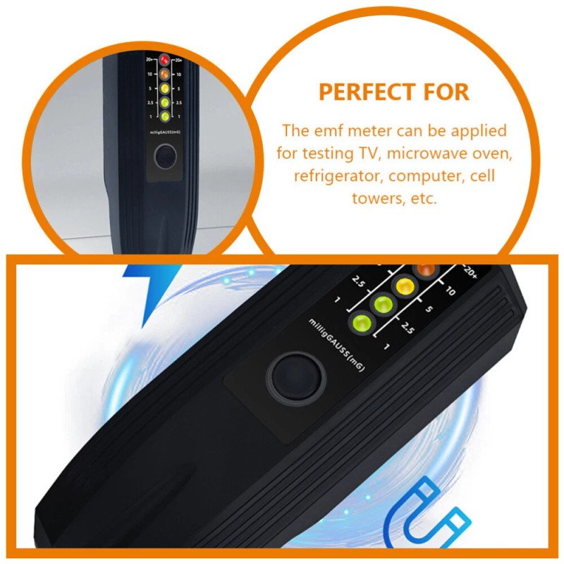 - One hand operation, to detect electromagnetic magnetic field level of home appliance.