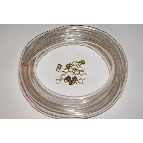 ITEM UP FOR SALE IS 5 FT OF CLEAR 3/16IN FUEL LINE HOLE WITH 5/16 OUTSIDE MEASUREMENT AND 15 FUEL LINE CLAMPS.REPLACE THAT WORN OUT FUEL LINE AT A GREAT PRICE.METHANOL TESTED GOOD STUFF.