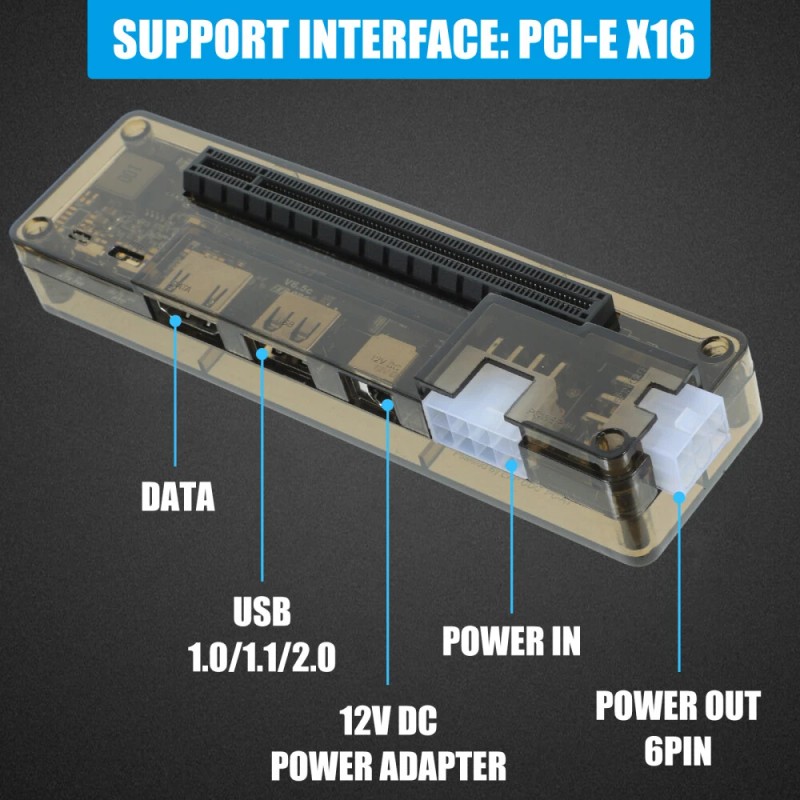 With multiple input interfaces and PCI-E X16 interface support, this dock allows you to easily expand your laptop's graphics capabilities.Take your laptop gaming experience to with this portable external graphics card dock. With a maximum power output of 220W (8Pin interface) and compatibility with multiple computing systems, this dock is perfect for gamers and professionals alike