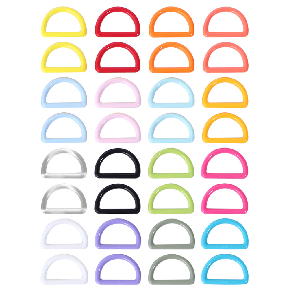 32 Pcs Plastic D-shaped Buckle Flat Ring Semi Circular Metal Key Fob