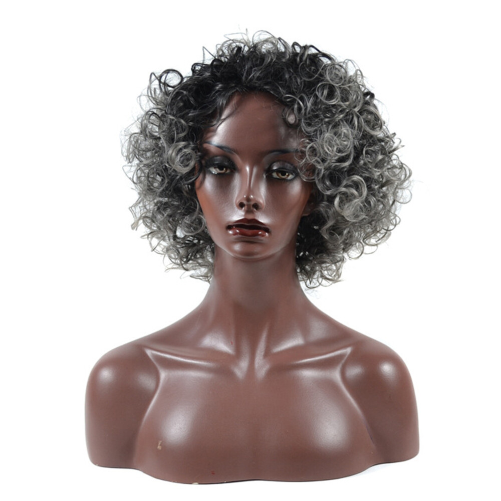 afro wigs cosplay Women Afro Curly Human Hair Wig Black Silver