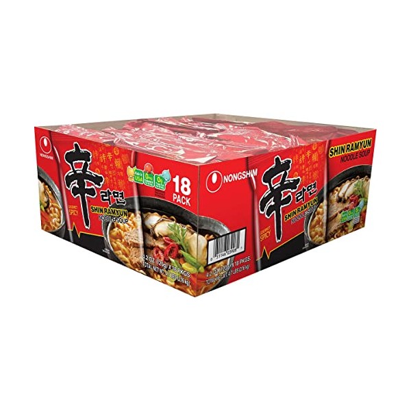 Nongshim Shin Ramyun Noodle Soup, 4.20 Ounce (Pack of 18)