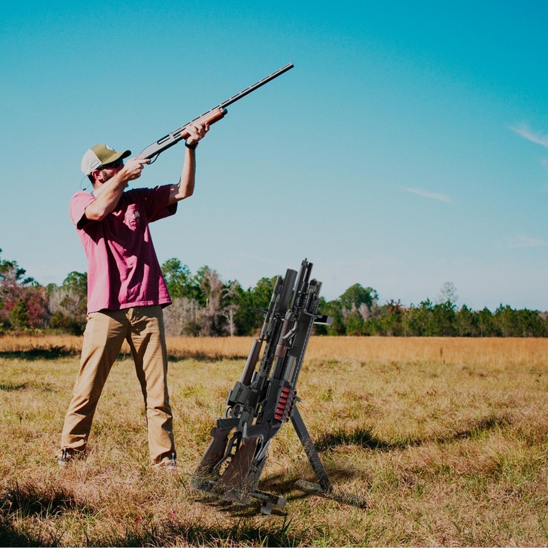 - â ăMULTI-SCENE APPLICATIONSăWhether it is an outdoor shooting range, hunting range, or indoor storage of firearms, folding gun stand can make your favorite guns well organized, easy to take and put.