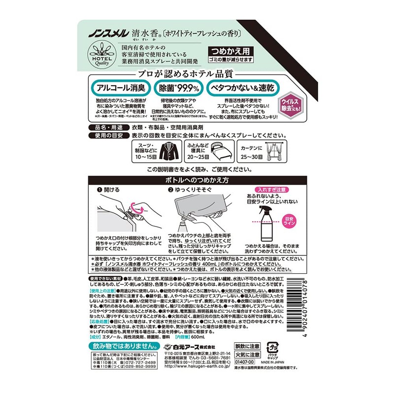 Nonmel 14078 Shimizu Incense Refill, 20.3 fl oz (600 ml), White Teef Deodorizer