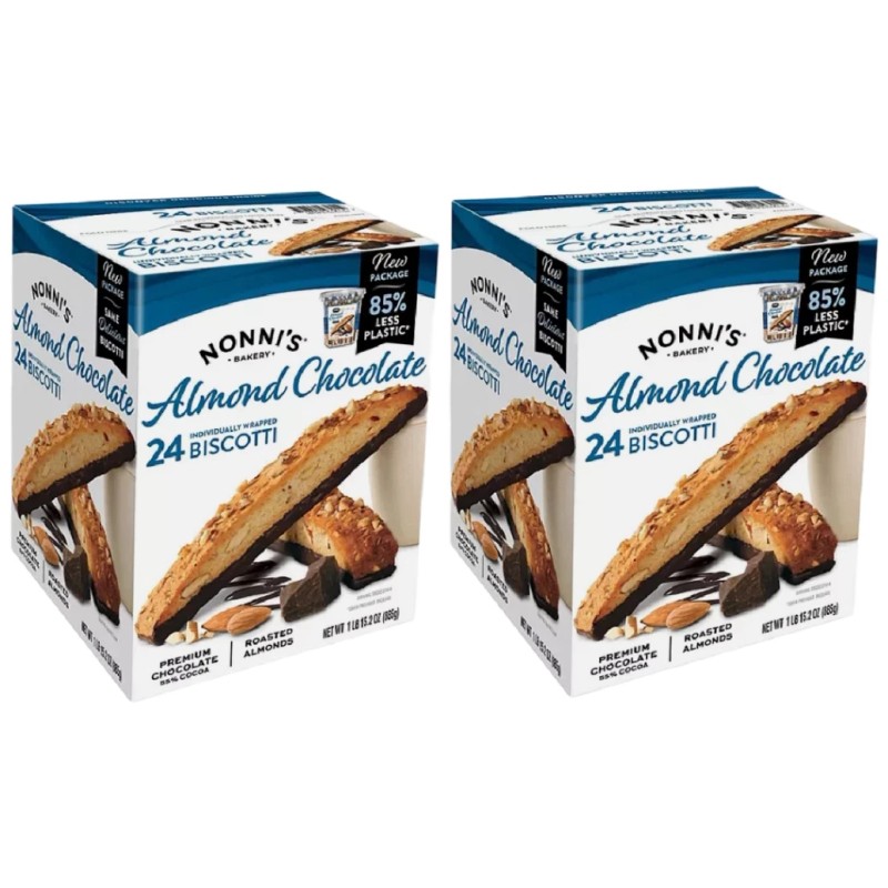 Nonni's 2 boxes - Nonni's Almond Chocolate Biscotti, 24 ct. (Total 48ct ind. wrapped )