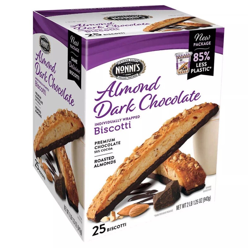 Nonnis Nonni’s Biscotti Almond Dark Chocolate Kosher 1.33 oz Each 25 count