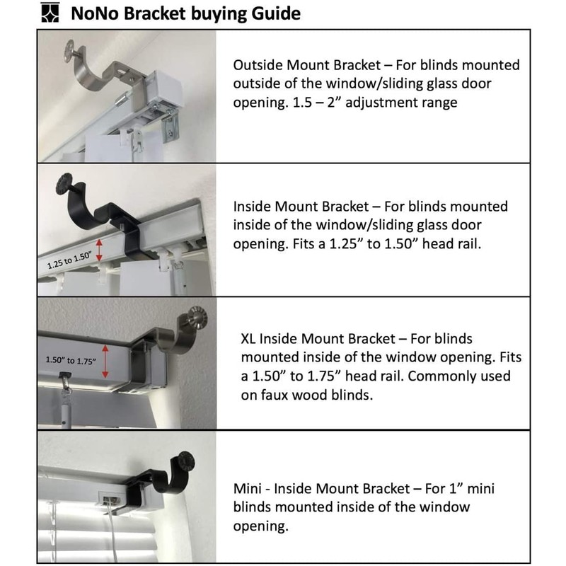 NONO Bracket Mini - Inside Mounted Blinds Curtain Rod Bracket Attachment for Mini Blinds (Black)