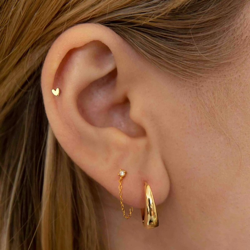 NONTAI Tiny Heart Stud Earrings, Gold Titanium Flat Back Earrings 16G, Threadless Cartilage Tragus Piercing Conch Stud Nose Helix Stud
