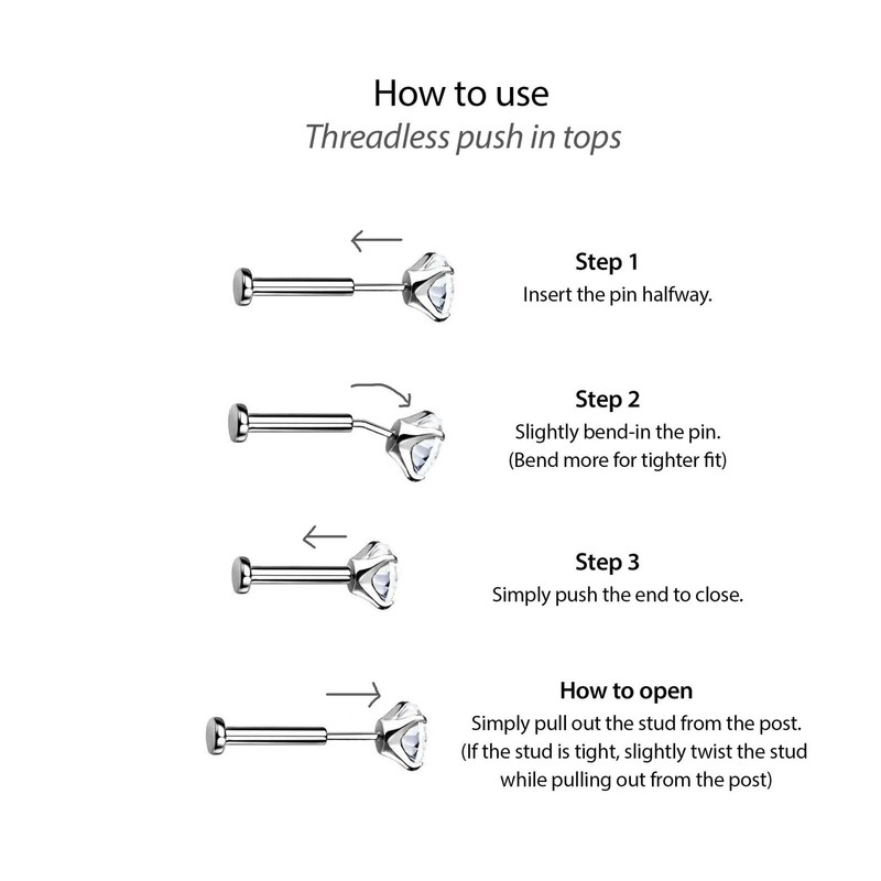 - 3PCS Cute Small Heart Threadless Flat Back Stud Earrings. (1pcs super tiny 3mm heart + 1pcs tiny 3.6mm heart + 1pcs small 4.2mm heart )