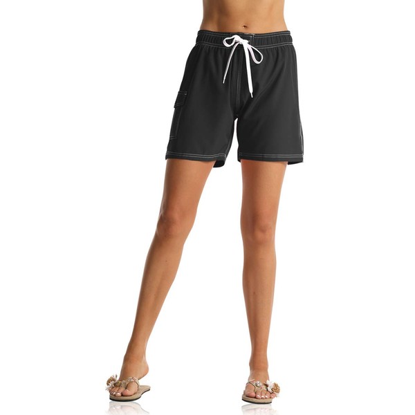 Nonwe Women's Surf Shorts Quick Dry Solid Summer Beach Swim Trunk Mesh Lining Black XS