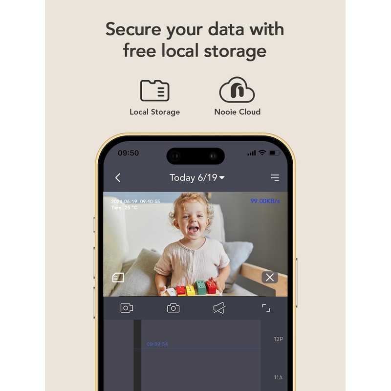 - Secure Free Local Storage & Playback: Enjoy peace of mind with 32GB built-in storage, offering instant access to playback videos. You can relive every precious moment on the Nooie app. Safeguard your precious memories with secure local storage, and easily save and share valuable videos with your loved ones