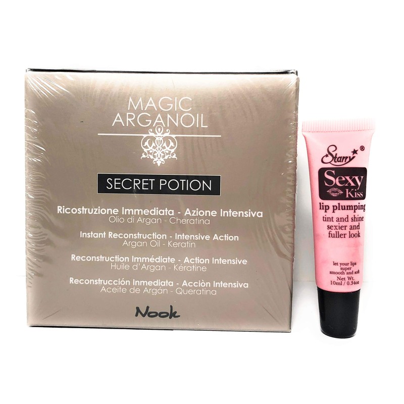The Nook Magic Argan Oil Secret Potion ampoules contain an instant absorbing hair lotion for intensive reconstruction of damaged hair and leached hair through chemical treatments and weather influences.