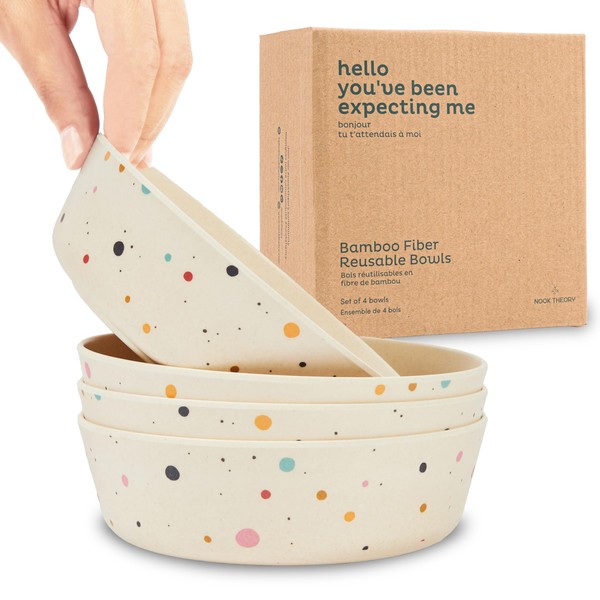 Nook Theory 4 Pack Bamboo Bowls - Alternative to Plastic Bowl, 18 Oz Reusable, Shatterproof Dinnerbowl, Dishwasher Safe - Not Microwavable Bamboo Dishes (Pop)