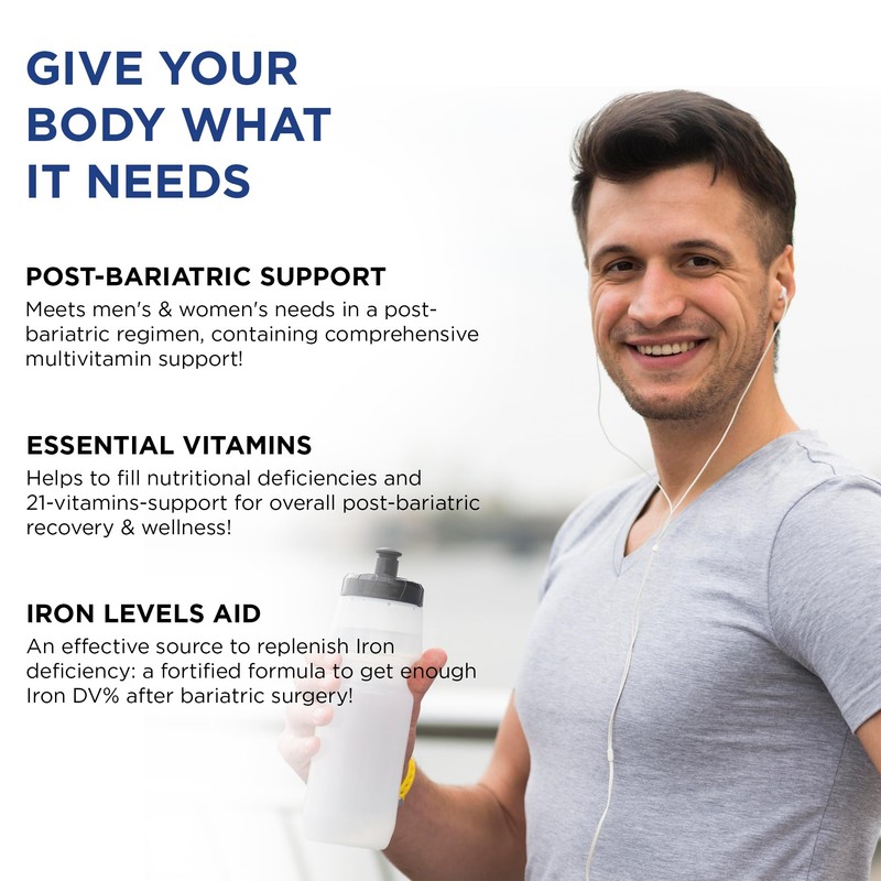 - Complete Bariatric Support: Specially formulated multivitamin with iron, tailored for post-surgery recovery to support overall health, energy, and vitality.