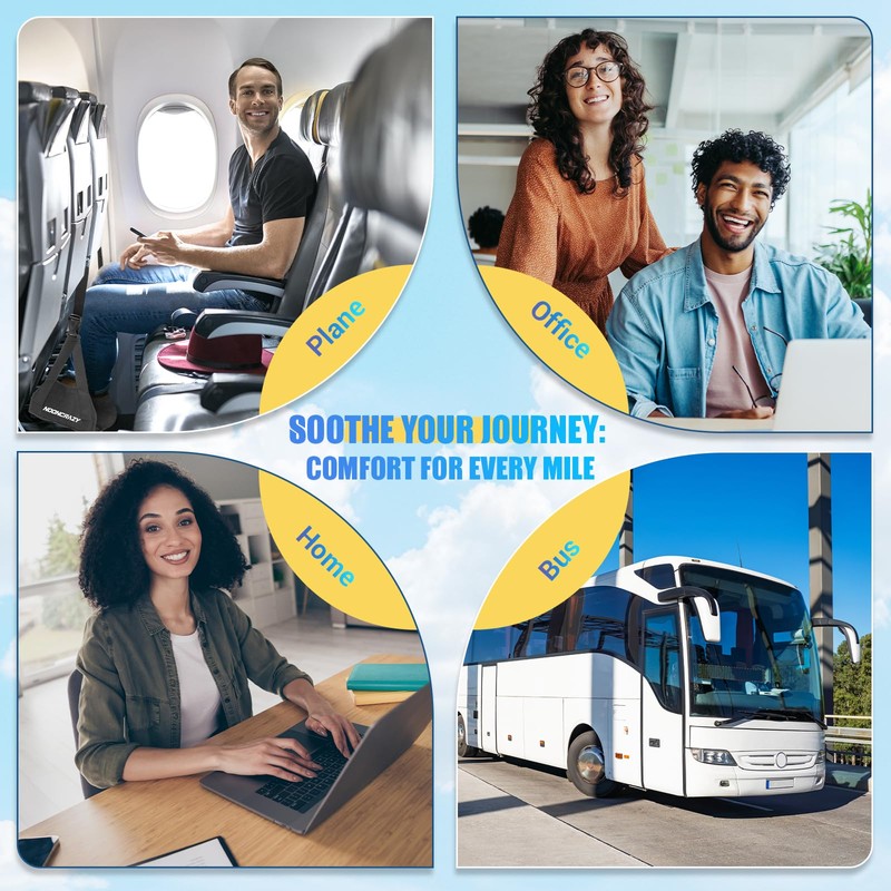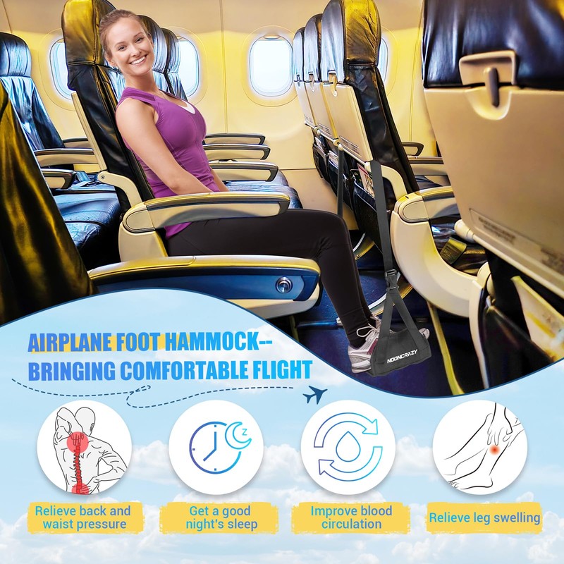 - [Plane Travel Essentials]: Our airplane foot hammock is a must have for long haul flights. Long-distance flights are often tiring, and this airplane foot rest can effectively relieve the pressure on your back and waist, helping you reduce leg stiffness and swelling caused by long periods of sitting. It is designed to improve blood circulation, so you can sleep well during the flight and enjoy a comfortable travel experience.