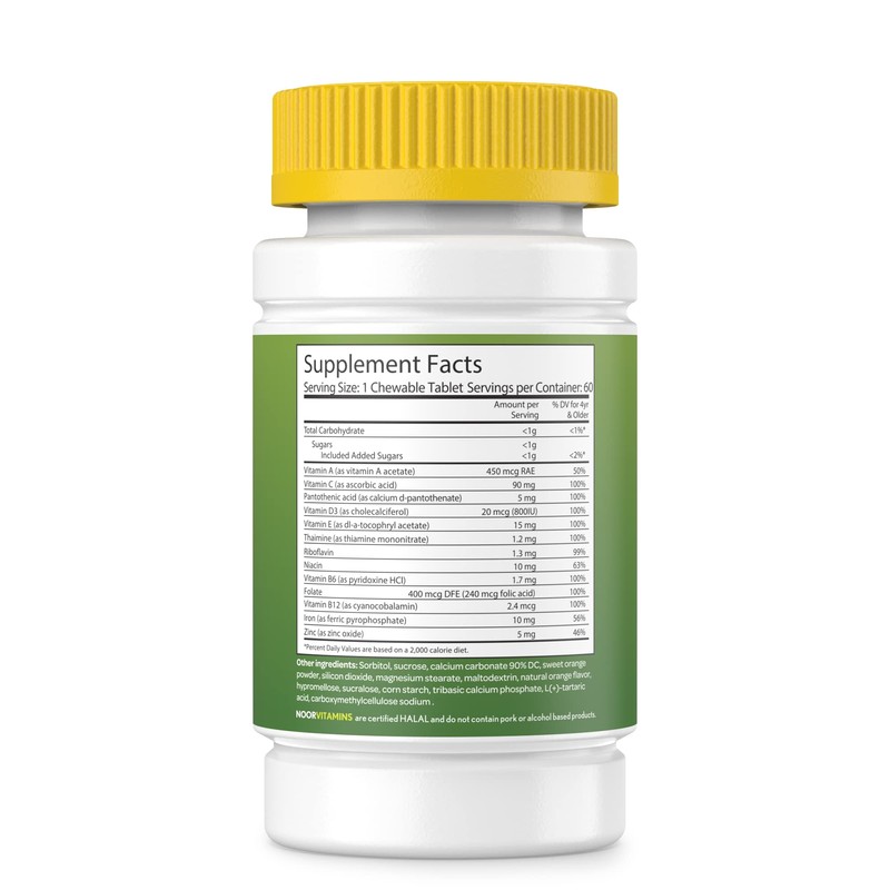 Noor Vitamins Halal Kids Multivitamin Chewable: Essential Vitamins For Immune, Bone & Eye Health with Iron - Non GMO & Gluten Free - Halal Vitamins 60 Count (2 Month Supply)