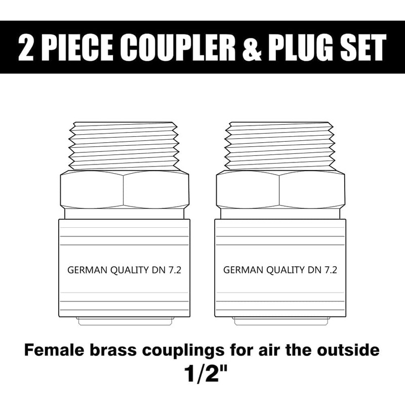 - ★【Package Contents】: 2 pieces compressed air coupling 1/2 inch female Euro female female female plug made of brass with external thread
