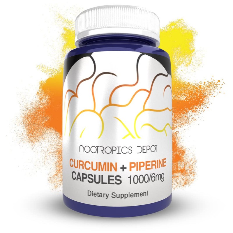 Nootropics Depot Curcumin + Piperine Capsules | 1000mg Curcumin + 6mg Piperine | 60 Count