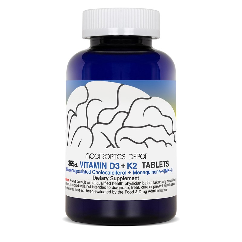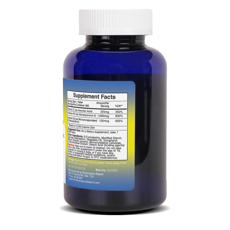 Nootropics Depot Nootropics Depot Vitamin D3 + K2 with Vitamin C Tablets | 365 Count | Cholecalciferol + Menaquinone-4 (MK-4) | Mood, & Bone Health | Healthy Calcium Absorption