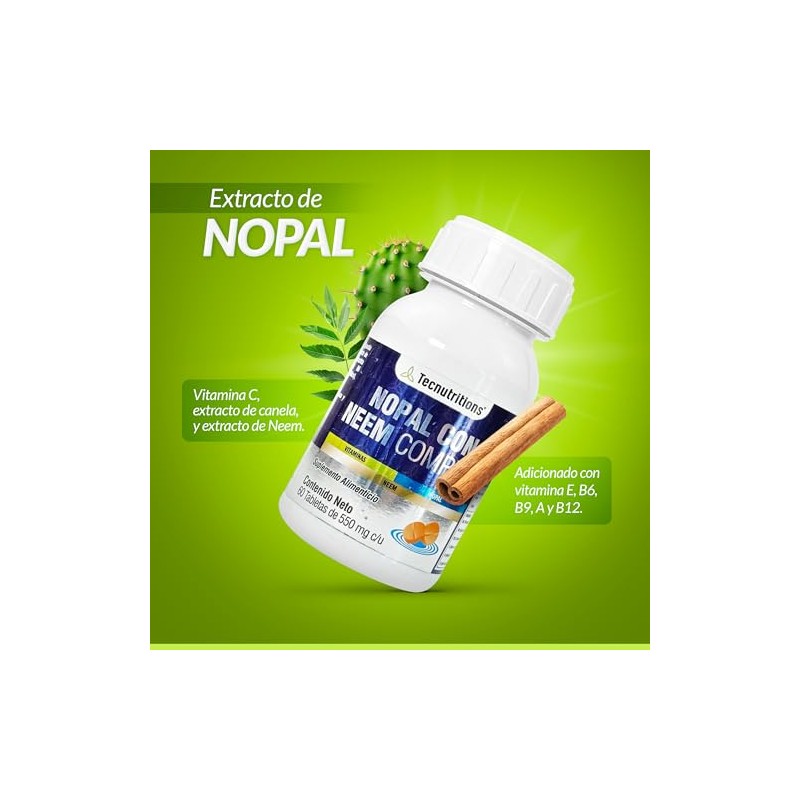 TECNUTRITIONS - Nopal con Neem Complex – Suplemento Alimenticio con Canela y Vitaminas C, E, B6, B9, A, B12 – Digestion, Metabolismo y el Equilibrio de Lipidos y Glucosa. 60 Tabletas de 550 mg c/u. TECNUTRITIONS.. π Reconocido por su excelente relación calidad-precio. Tecnología avanzada y rendimiento superior. π Perfecto como regalo especial. Ideal para quienes buscan lo mejor en calidad y estilo. Producto auténtico con satisfacción total asegurada. ¡No te quedes sin el tuyo y aprovecha esta oportunidad única!