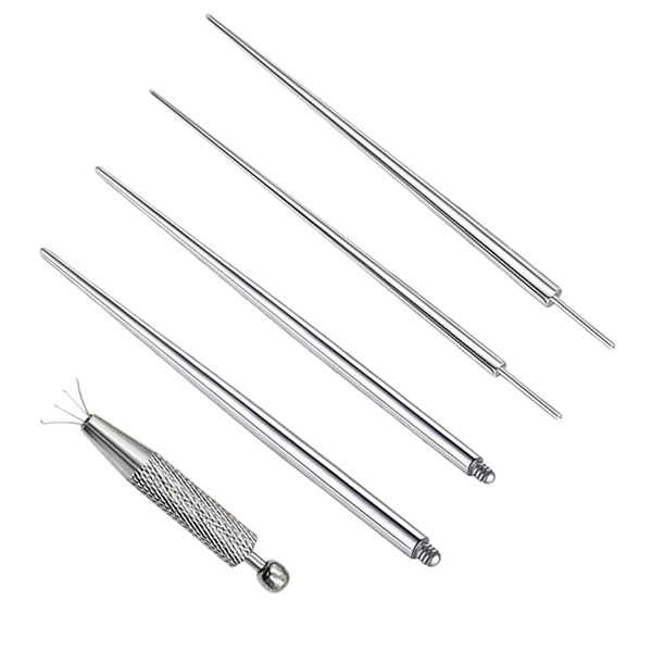 NOPKESV Stainless Steel Piercing Taper Insertion Pin, Thread-Free Assistant Tool, Screw-On Curved Piercing Stretching Kit, Pack of 5