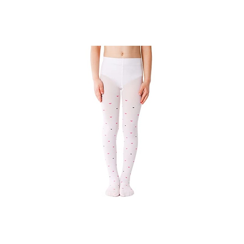 NOQ Children's Thin Tights with Beautiful Print Girls Patterned 40 Denier School Dance Ceremony Casual, Dina Bianco