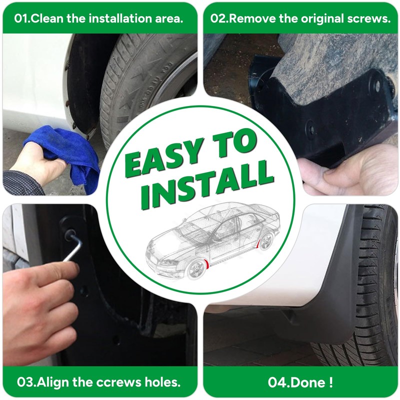 - Premium Material: Made from thermoplastic polypropylene materials, the mudflaps are flexible, environmentally friendly, non-toxic, strong and wear-resistant.We sincerely assure you that after repeated tests, it can easily cope with all kinds of extreme weather.