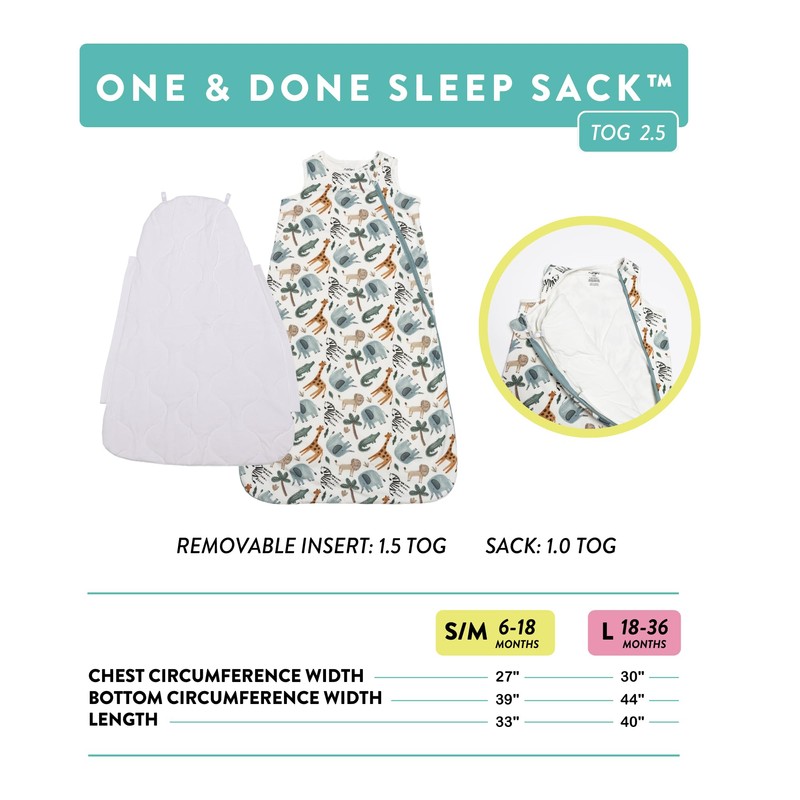 Norani Baby One & Done Sleep Sack™ – All-Season 2-in-1 Design with Removable Insert for Toddler Comfort – Adjustable for Warm & Cool Weather - Safari - Large