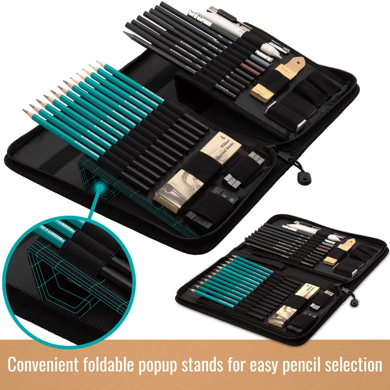 - Novice To Professional: start sketching as soon as you open the drawing kit! Complete drawing supplies set with a sketch pad, art pencils, kneaded eraser, pencil sharpeners
