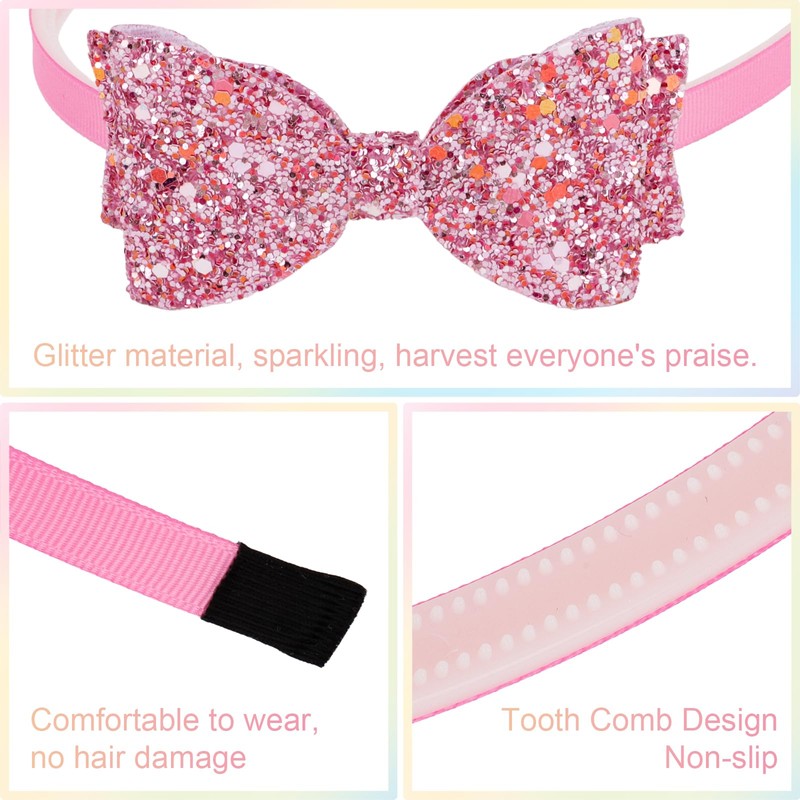 Norbiariz 6 Pack Cute Headbands with Bow for Women Girls Fashion Sequin Hair Bands Princess Tiaras Headdresses Sparkling Birthday Party Decorations