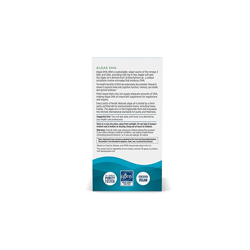 • WHY ALGAE DHA - Nordic Naturals Algae DHA can help vegetarians & vegans meet their daily recommended serving of omega-3 DHA with small, easy-to-swallow vegetarian soft gels.
